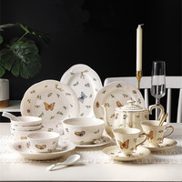 Service de vaisselle papillon de luxe en céramique à bord doré tasses à thé de l'après-midi théière tasse à thé plats et assiettes ensembles de dîner à la maison