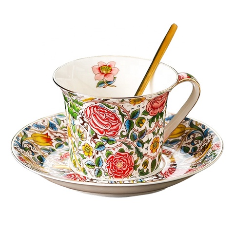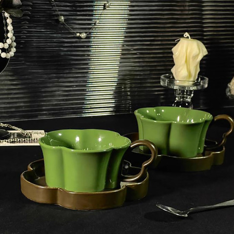 แก้วเซรามิกใส่น้ำชายามบ่ายสุดสร้างสรรค์แก้วและจานใส่กาแฟอาหารเช้าแสนสวยแบบย้อนยุค